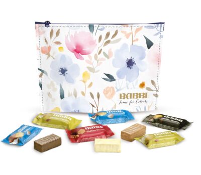 - Pochette Colours përmban një assortim të 14 Babbini – mini wafers të mbushur me krem dhe të mbuluar me çokollatë në shije të ndryshme.