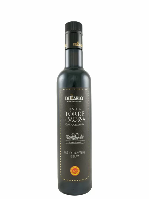 • Extra Virgin Olive Oil Tenuta Torre di Mossa është një vaj ulliri premium, prodhuar nga De Carlo, që vjen ekskluzivisht nga fermë historike “Torre di Mossa” në Puglia, Itali. Ky vaj është monovarietal (100% Coratina) dhe mbart certifikimin PDO (Terra di Bari – Bitonto), duke garantuar cilësi, origjinë dhe karakter të fortë. Ideale për ata që kërkojnë një vaj me karakter, aromë intensive dhe identitet territorial të fortë.