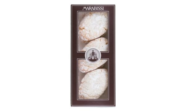 Një ëmbëlsirë tradicionale toskane, Ricciarelli, të përgatitura me mjeshtëri nga Marabissi. Ky paketim ATTIMI – Sei Ricciarelli 120g përmban gjashtë biskota të buta dhe aromatike, të njohura për teksturën e tyre të veçantë dhe shijen e pastër të bajames.