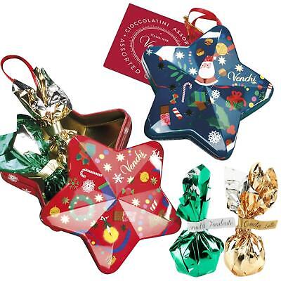 Ky ornament metalik në formë ylli është pjesë e koleksionit të edicionit të kufizuar të Krishtlindjeve nga Venchi, i dizajnuar nga artista Alice Bureau. Ai është i mbushur me çokollata Cometa të shijshme, të cilat përfshijnë kombinime të çokollatës qumësht dhe të errët. Ky ornament është një dhuratë e shkëlqyer për të dekoruar pemën e Krishtlindjeve ose për t’u shijuar me miqtë dhe familjen.
