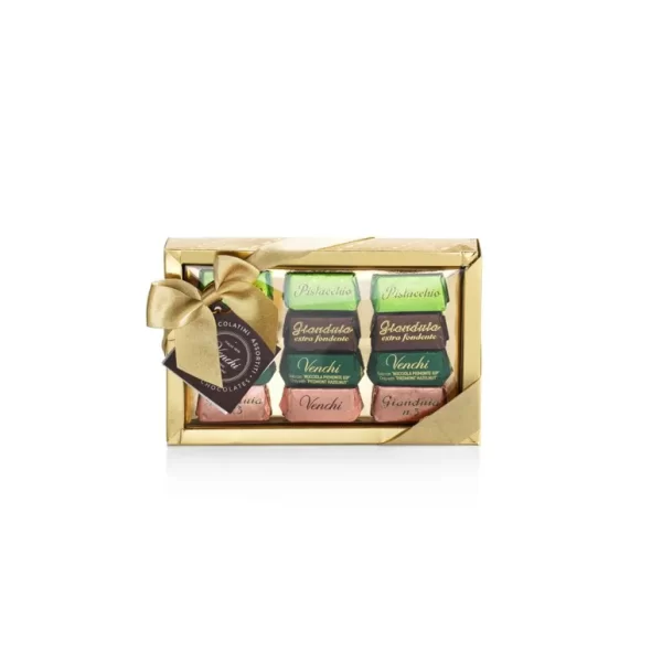 - Një kuti dhurate me çokollata Gianduiotti të Venchi, me gianduia të pasur dhe aromë klasike lajthie, perfekte për një dhuratë elegante ose për një moment të veçantë shijimi.